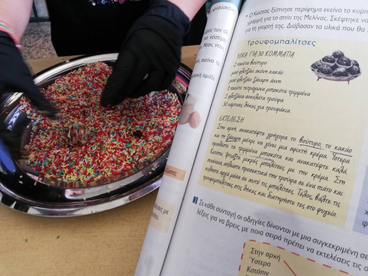 Ακολουθώντας βήμα βήμα τις οδηγίες, έγιναν μικροί ζαχαροπλάστες και με μεράκι έφτιαξαν νόστιμα πολύχρωμα σοκολατένια τρουφάκια!