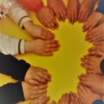 Παράλληλα οι λέξεις “αγάπη” και “φιλία” ειπώθηκαν πολύ από τα παιδιά οπότε δημιούργησαν τη υδρόγειο σφαίρα σαν ένα κύκλο γεμάτο καρδιές με λεξούλες που δηλώνουν τα δικαιώματά του.