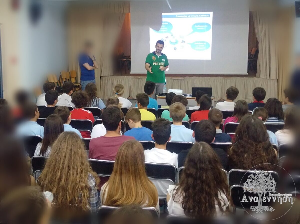 Οι μαθητές του Γυμνασίου μας καθώς και οι μαθητές της Ε και Στ Δημοτικού ενημερώθηκαν για το Διαδίκτυο και τους κινδύνους που κρύβει, από τους υπευθύνους της Δίωξης Ηλεκτρονικού Εγκλήματος της Ασφάλειας Πατρών. Οι κύριοι Αγγελόπουλος Γ. και Λυγερός Γ. με σαφήνεια και παραστατικότητα ενημέρωσαν τους μαθητές και παράλληλα απάντησαν στα ερωτήματα τα οποία τους έθεσαν.