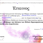 Η μαθήτρια του Λυκείου μας, Βουκελάτου Ιωάννα, παρέλαβε τιμητικό έπαινο από τη Γενική Γραμματεία Ισότητας των Φύλων για τη Συμμετοχή της στον Πανελλήνιο Διαγωνισμό Δημιουργίας αφίσας με θέμα: “Χτίζουμε την Ισότητα των Φύλων δημιουργώντας ενάντια στα στερεότυπα”!