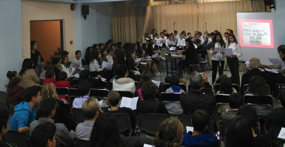 Σε συνεργασία των μαθητών της Δ Δημοτικού και της Α Γυμνασίου πραγματοποιήθηκε η φετινή γιορτή για την επέτειο του Πολυτεχνείου!