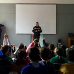 Στη συνέχεια βγήκαμε στο προαύλιο που είχε έρθει ένα από τα οχήματα της 6ης ΕΜΑΚ! Εκεί οι άνδρες της ΕΜΑΚ έδειξαν στους μαθητές αρκετά από τα σύνεργά τους και πώς τα χρησιμοποιούν στην αποστολές τους!