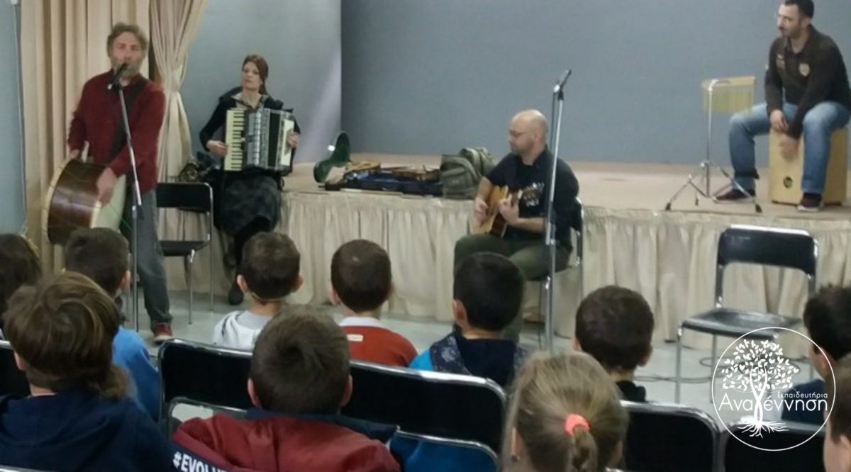 Είχαμε τη χαρά να φιλοξενήσουμε τον Κώστα Κωνσταντάτο (Encardia, Alcedo Folk Band) στο σχολείο. Μαζί με τους alliotica band μας ταξίδεψαν σε ρυθμούς και μελωδίες της ελληνόφωνης Κ. Ιταλίας. Μαθητές από το Νηπιαγωγείο μέχρι το Λύκειο τραγούδησαν και χόρεψαν σε ρυθμούς ταραντέλας.