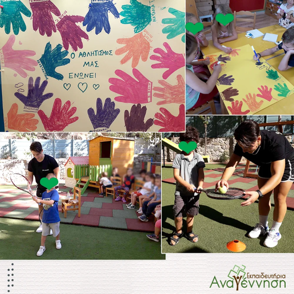 Οι μαθητές του Νηπιαγωγείου απόλαυσαν δραστηριότητες όπως τένις, διασκεδαστικά παιχνίδια και δημιουργικές κατασκευές στον χώρο του σχολείου.