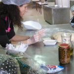 Φορέσαμε ποδίτσες και καπελάκια και η κυρία Γεωργία μας έδειξε τα υλικά με τα οποία θα φτιάχναμε τη ζύμη. Τα υλικά που χρειαστήκαμε ήταν ελαιόλαδο, ελιές, βούτυρο, μάγια και ζέα αντί για αλεύρι. Μας έδειξε το φυτό απ’ όπου βγαίνει η ζέα και μας εξήγησε ότι δεν είναι σιτάρι αλλά δημητριακό που το καλλιεργούσαν τα πολύ παλιά χρόνια μέχρι που ήρθε στη καθημερινή χρήση το σιτάρι. Είναι πλούσιο σε μαγνήσιο και περιέχει λίγη γλουτένη.