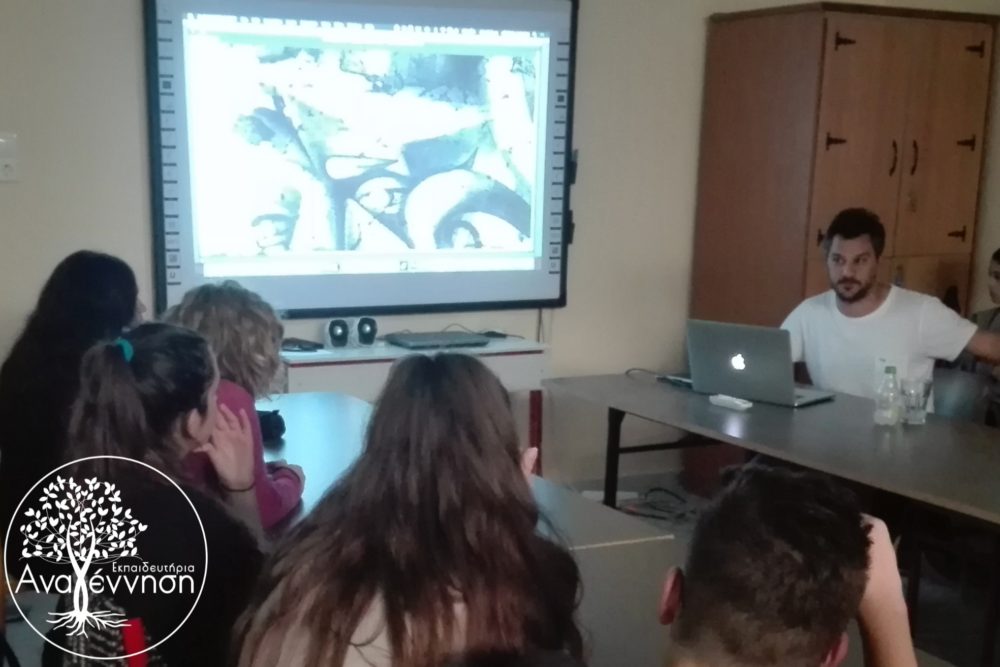 Στο πλαίσιο του πολιτιστικού προγράμματος “Τέχνη και τεχνολογία” υποδεχτήκαμε τον εικαστικό Ευθύμιο Αργυράτο ο οποίος μας ενημέρωσε τους μαθητές μας για τη χρήση ψηφιακών μέσων στην εικαστική δημιουργία. Τους βοήθησε να εξοικειωθούν με τεχνικές που χρησιμοποιεί στη δουλειά του και να διαπιστώσουν πως η σύγχρονη τεχνολογία μπορεί να αποτελέσει όχι μόνο εργαλείο, αλλά και πηγή έμπνευσης.